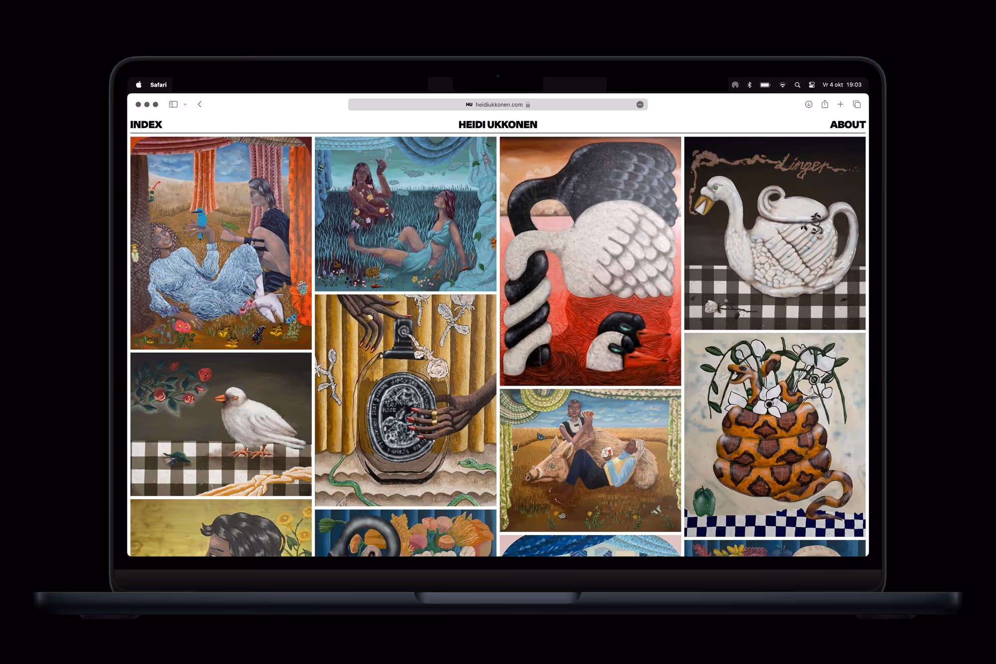 Heidi Ukkonen, born in 1980 in Stockholm, Sweden, is an artist whose captivating paintings construct a mesmerizing utopian world. Her artworks resonate with a compelling narrative, depicting characters immersed in imaginative everyday scenarios that blur the boundaries between reality and the fantastical. The artist’s brushstrokes expertly reveal the intricate interplay between figures and their environments, offering a playful distortion of contemporary animations within modern society. Her artistic expressions transcend traditional boundaries, seamlessly blending diverse textures and materials to create almost sculptural pieces.